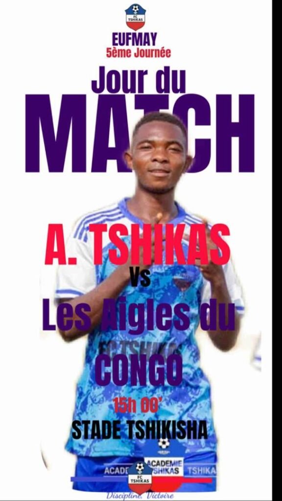 Bien partie avec plus de victoires dans le championnat local, l’Académie TSHIKAS sera aux prises avec les Aigles du Congo pour la cinquième journée du championnat local, première division de l’Entente Urbaine de Football du Mbujimayi (EUFMAY) ce lundi 27/10/2025 à 15h 00′ au stade TSHIKISHA