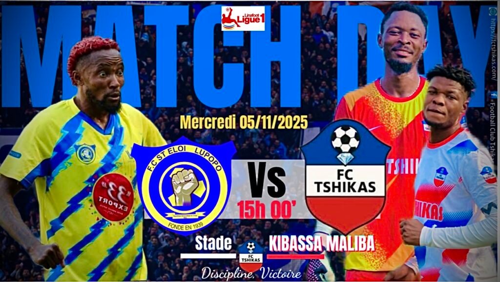 FC St ÉLOI LUPOPO Vs FC TSHIKAS Par Théodore / novembre 5, 2025 Partager cet article : Au-delà d’un simple match de routine, le FC TSHIKAS jouent sa survie ce soir au Stade KIBASSA MALIBA de LUBUMBASHI. Une rencontre plein d’enjeux Partager cet article :